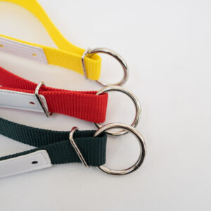 Collare in nylon per capre con rinforzo in cuoio e anello. Larghezza 2,5 cm – Lunghezza 60 cm. Colori disponibili: rosso, giallo, verde